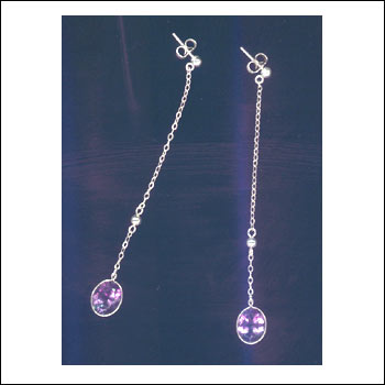 Beautiful pale amethyst with gem-quality faceting is supsended from a length of fine sterling silver chain, enhanced with sterling silver bead. Sterling silver posts and butterfly backs. Made to order, ships in 1-2 weeks