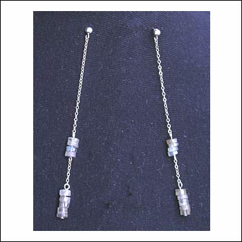Two sections of irridescent blue and grey labradorite disc beads suspended from fine sterling silver chain. Sterling silver posts and butterfly backs. In stock ships in 1 - 3 days.