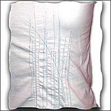 Stitched with random pinstripes of turquoise metallic thread. Adds a