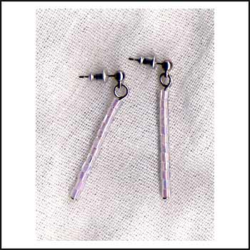 A bar of iridescent white sparkling glass tube beads is suspended from a surgical steel ball/post earring. Rubber grip nut back. In stocks ships in 1-3 days.