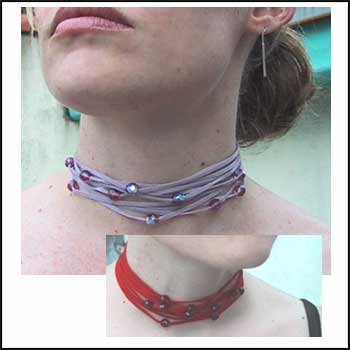 chain and clasp at back. Lavender, Red or Black (not pictured). Red