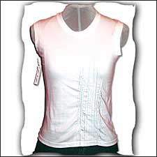 100% cotton white muscle tee with 1" binding at neck and armholes.