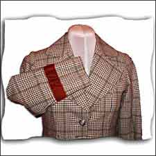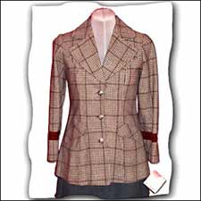Fitted vintage blazer in brown-hued wool plaid. Split at back and laced-up