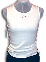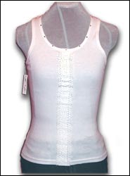 White muscle tee with lace inset sides and pink rhinestones $35